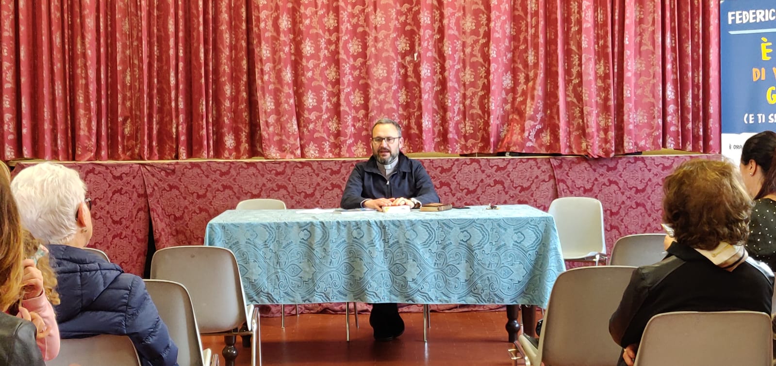 Alla presenza di un considerevole numero di fedeli ed amici, tra cui i suoi genitori Bruno ed Anna, domiciliati a pochi passi dalla Parrocchia, don Federico espone con il suo dire vivace i contenuti del nuovo libro, nato da un esperienza fatta coi giovani, con Gesù al centro di tutta l’evangelizzazione. Richiama subito l’uditorio ad una testimonianza di Romano Guardini, riportata sul frontespizio del citato libro: “Se ci si immerge nella figura di Gesù, s’impone presto o tardi un sentimento inquietante: può esistere qualche cosa di simile?”. La nostra inquietudine ci fa avvertire la vicinanza dell’infinito, beatitudine e minaccia ad un tempo che, purtroppo, in molti cuori, oggi, questa inquietudine è stata tolta.